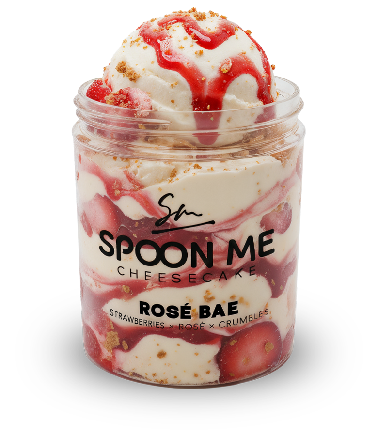 Rosé Bae Cheesecake is swirled with lush rosé ribbons and fresh strawberry ribbons, layered over our classic cheesecake base, and finished with a sprinkles of golden crumbles. She’s elegant, indulgent, and just a touch flirtatious—luxury with a playful twist.